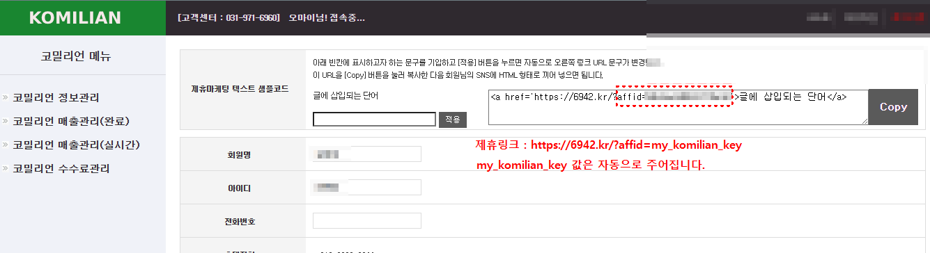 홍보를 위해 제휴링크를 게시할 때 이 '제휴사 키값'이 정확히 표기되어야 합니다.